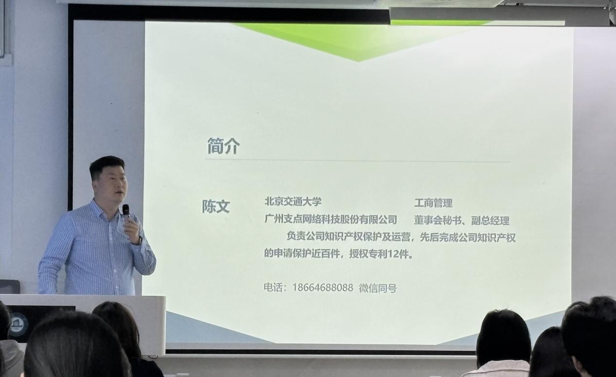 11月13日,管理学院在番禺校区举办“知识产权管理赋能创新创业”专题讲座。本次讲座特邀企业知识产权管理专家陈文担任主讲,系统阐述了知识产权与创新创业之间的内在联系及其战略价值。