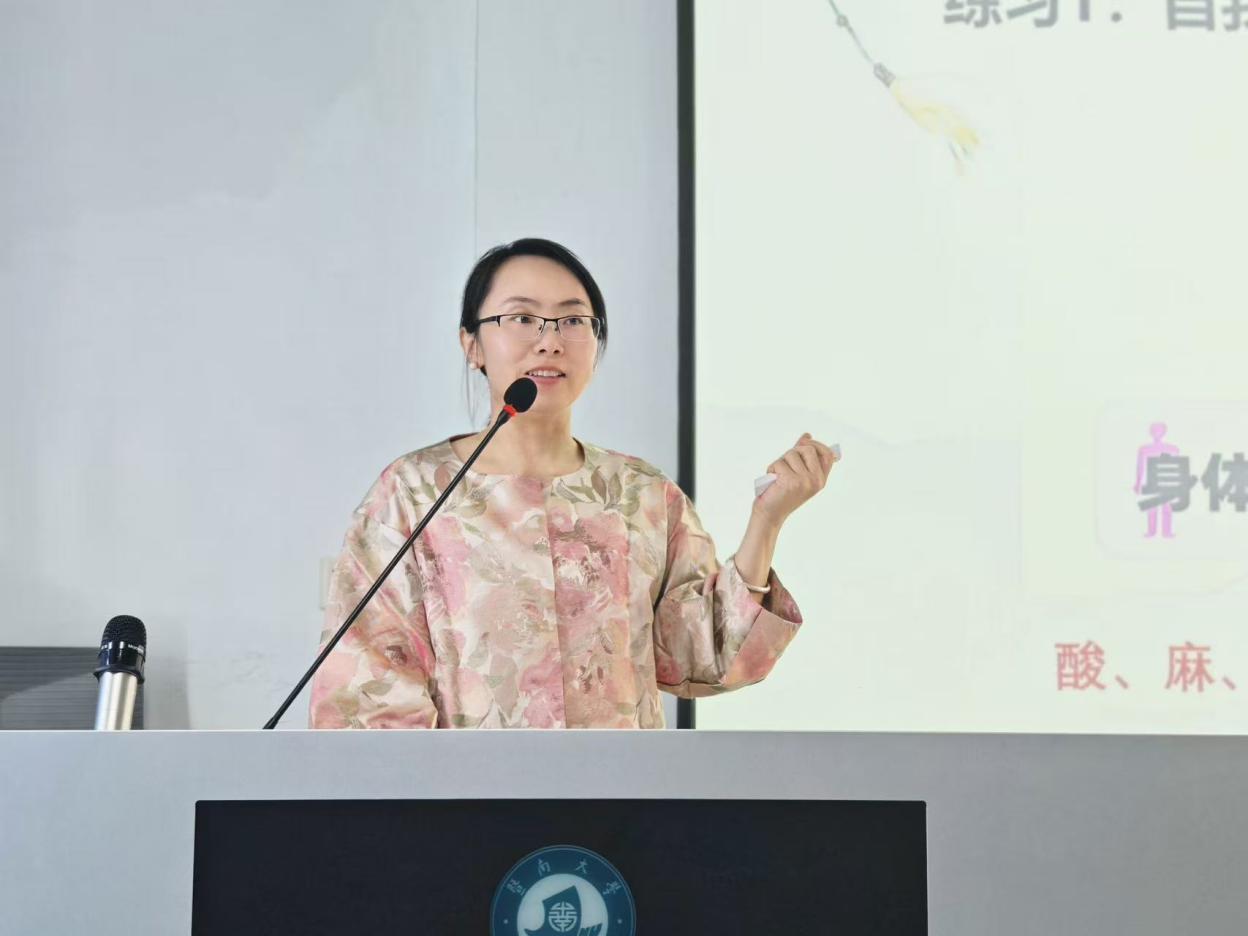 讲座尾声,张丹丹指导学生开展了意识与潜意识整合的实操训练,并总结提出“十六字方针”:分清你我、站对位置、守住边界、活出自我。整场讲座内容系统、环节连贯,从认知构建到实践操作,为学生提供了一套应对内耗的可行方法,助力其构建更为积极、自主的人生姿态。