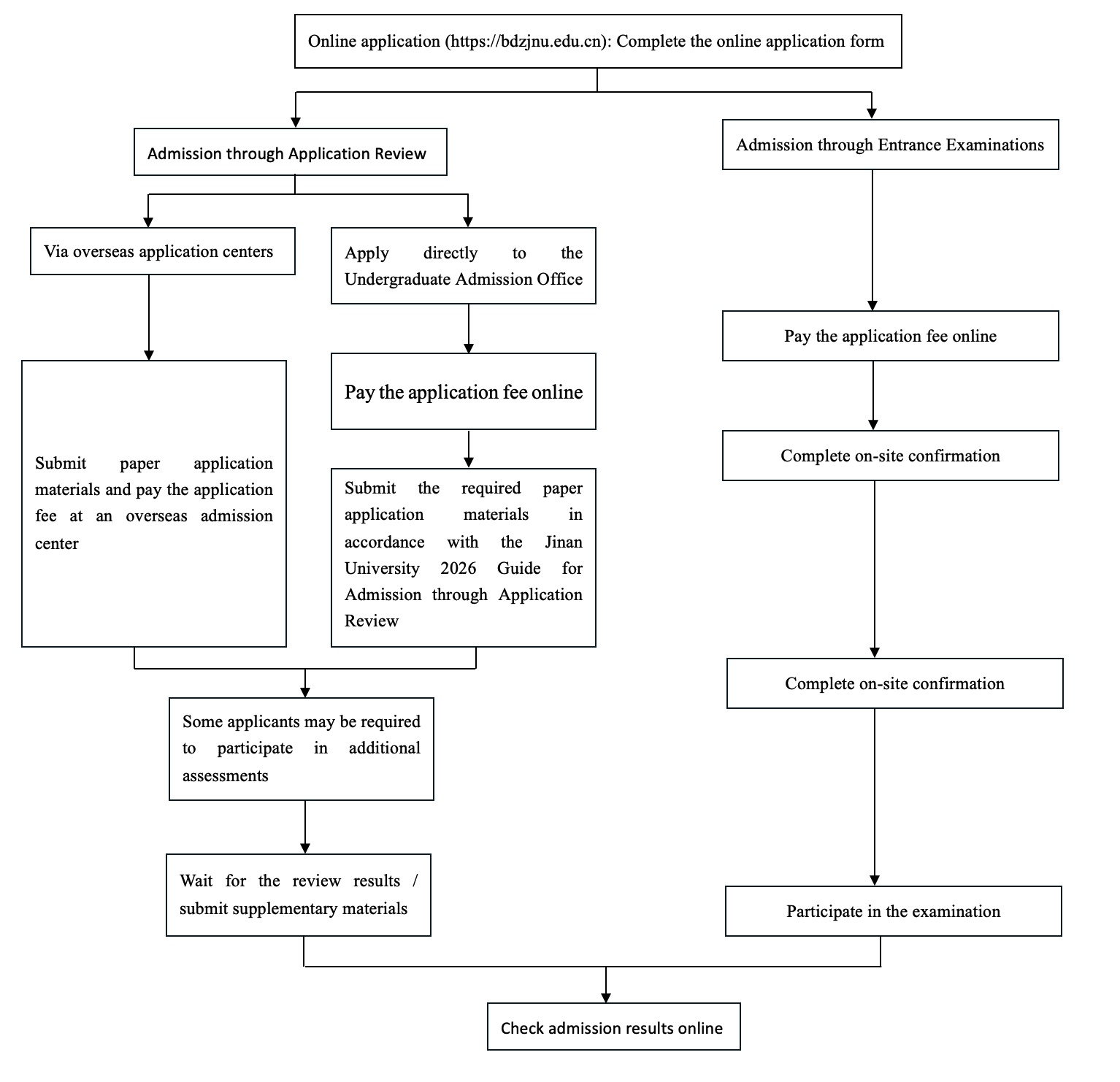 2026-03-18Jinan University 2026 Admission Guide for Overseas Chinese StudentsAdmission BrochureFounded in 1906, Jinan University, known as the “highest academic institution for overseas Chinese”, is a key university included in China’s Project 211 and the Double First-Class Initiative, as well as a key university supported under the Guangdong High-Level University Development Plan. On October 24, 2018, Xi Jinping, General Secretary of the Communist Party of China Central Committee, President of the People’s Republic of China, and Chairman of the Central Military Commission, visited Jinan University and delivered an important speech. He urged the University to uphold the fundamental mission of fostering virtue through education, carry forward the spirit of Jinan University, maintain its distinctive educational traditions, and continue to cultivate outstanding students and strengthen institutional development, while providing better opportunities for overseas Chinese students to study in China and carry forward Chinese culture.Jinan University offers a comprehensive range of academic disciplines, covering 12 major fields of study, including literature, history, philosophy, economics, management, law, science, engineering, medicine, education, arts, and interdisciplinary studies. With balanced strengths across the humanities, sciences, engineering, and medicine, the University demonstrates the distinctive advantages of a comprehensive institution and strong potential for interdisciplinary integration. The University currently consists of 38 schools/colleges, 59 departments, and 18 directly affiliated research institutes. It offers 108 undergraduate programs, 41 Master’s degree programs in first-level disciplines, 28 Doctoral degree programs in first-level disciplines, and 41 categories of professional degree programs. In addition, the University hosts 24 postdoctoral research stations and one postdoctoral research workstation. At present, the University has 52 national-level first-class undergraduate programs and 34 provincial-level first-class undergraduate programs. As of March 2025, 19 disciplines at Jinan University rank within the top 1% globally in the Essential Science Indicators (ESI), placing the University third among universities in Guangdong Province. Among them, 13 disciplines rank within the top 5‰ globally, and Pharmacology and Toxicology ranks within the top 1‰ worldwide. In the fifth round of the Ministry of Education’s national discipline evaluation, 37 first-level disciplines of the University participated, showing significant overall improvement.Deeply rooted in the Guangdong–Hong Kong–Macao Greater Bay Area, Jinan University operates five campuses located in Guangzhou, Shenzhen, and Zhuhai. The University currently enrolls 48,393 full-time students, including 31,851 undergraduate students and 16,542 graduate students. Among them, 16,110 are students from Hong Kong, Macao, Taiwan, overseas Chinese communities, and other international students.Jinan University actively promotes its internationalization strategy and has established 148 admission centers in 82 countries and regions worldwide. In 2025, the University hosted 2,012 international students from 97 countries and regions. The University has signed cooperation agreements or memoranda of understanding with 252 universities and institutions in 54 countries and regions across five continents, as well as Hong Kong, Macao, and Taiwan, with substantive collaborative programs underway. The International School, which offers programs taught entirely in English, has been operating for more than 20 years. The Jinan University–University of Birmingham Joint Institute, approved by the Ministry of Education, has demonstrated outstanding educational outcomes. In addition, Jinan University’s College of Japan, an overseas educational institution of the University, has been officially recognized by Japan’s Ministry of Education, Culture, Sports, Science and Technology and continues to expand its academic programs.Adhering to its educational principle of “serving overseas Chinese and students from Hong Kong, Macao and Taiwan”, Jinan University has, since its founding, educated more than 500,000 graduates from over 170 countries and regions across five continents, as well as Hong Kong, Macao, and Taiwan. As the saying goes, “Wherever there is the sea, there are alumni of Jinan University.” Today, Jinan University has become the preferred destination for students from Hong Kong, Macao, Taiwan, and overseas Chinese communities pursuing higher education in Chinese mainland.(Data updated as of March 2025)I. Eligibility RequirementsOverseas Chinese students who possess a high school diploma or equivalent educational qualifications, are generally under the age of 25, have good moral character, no criminal record, and are in good physical and mental health are eligible to apply to Jinan University.According to the Notice of the Ministry of Education and Four Other Departments on the Joint Admission of Overseas Chinese, Hong Kong, Macao and Taiwan Students by Regular Institutions of Higher Education (JX [2018] No. 4), the residency duration of overseas Chinese students and one of their parents holding overseas Chinese status must meet the following requirements:(1) Both the student and one of his or her parents must have obtained long-term or permanent residency in the country of residence, and must have resided continuously in that country for two consecutive calendar years (i.e., from January 1 of one year to December 31 of the following year), with a period of residence of no less than 18 months (540 days). In addition, the student must have resided cumulatively for at least 18 months (540 days) in the country of residence within the two years prior to application (from April 1, 2024 to March 31, 2026).(2) If either the student or one of the parents has not obtained long-term or permanent residency, but h